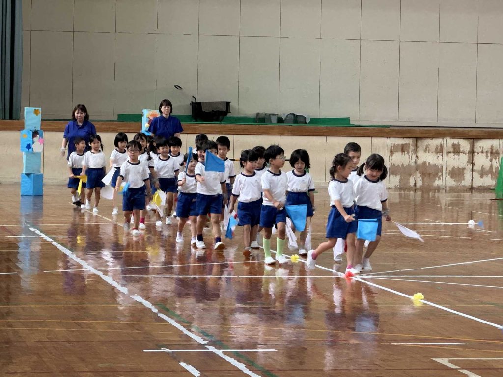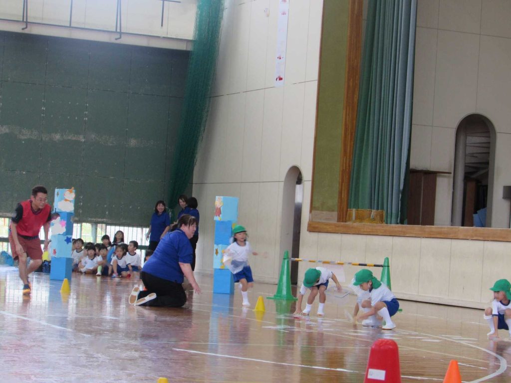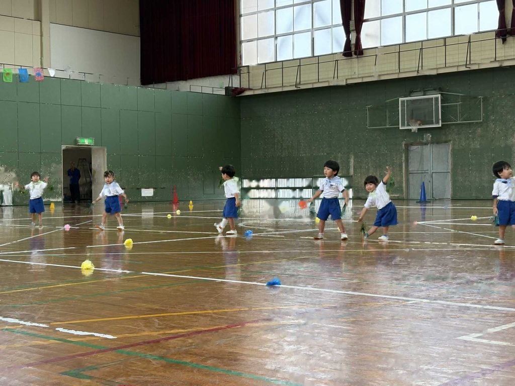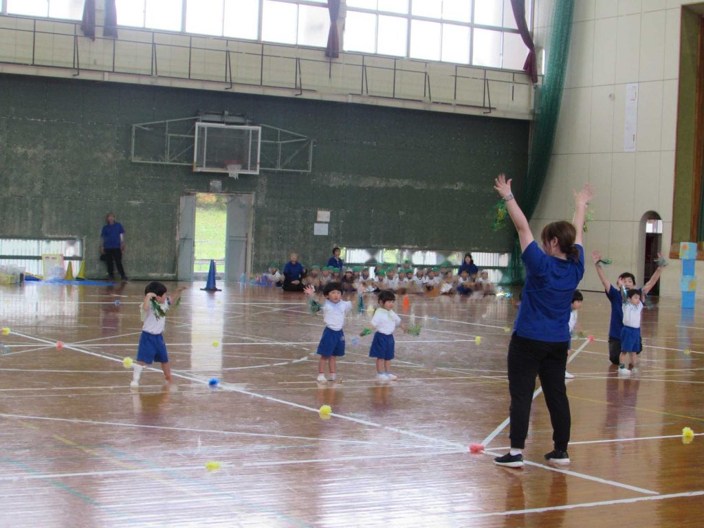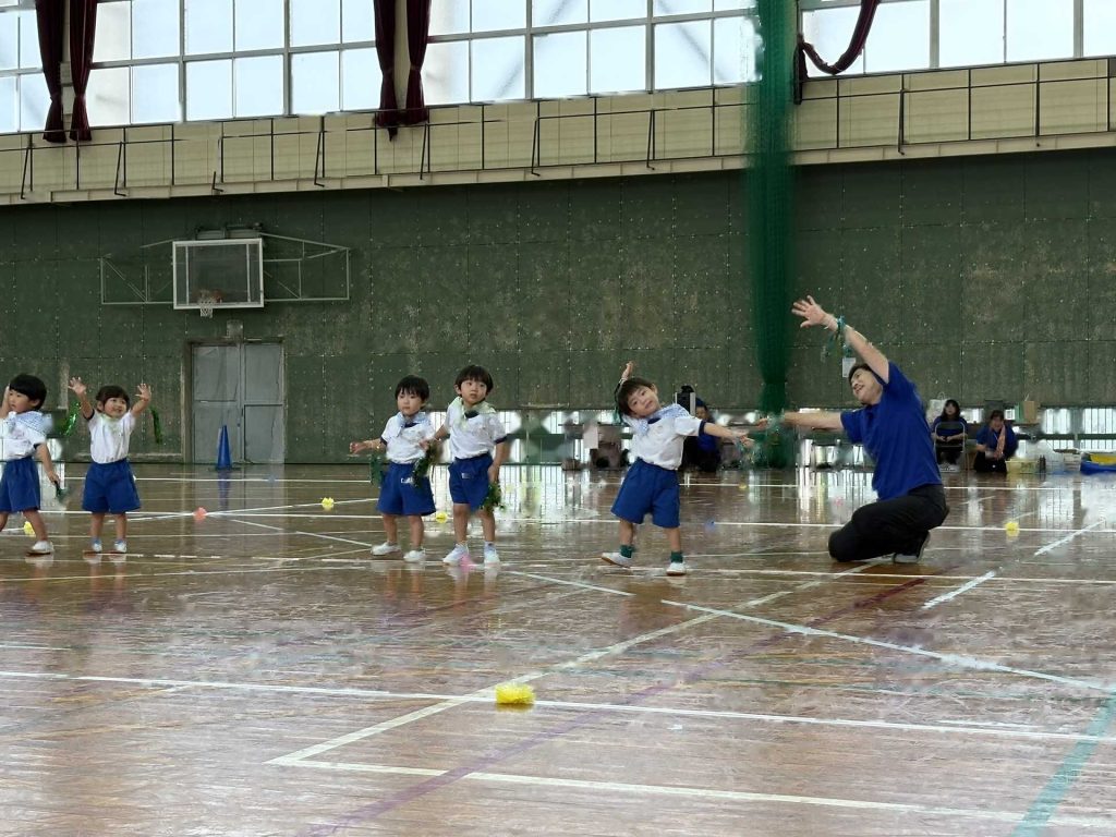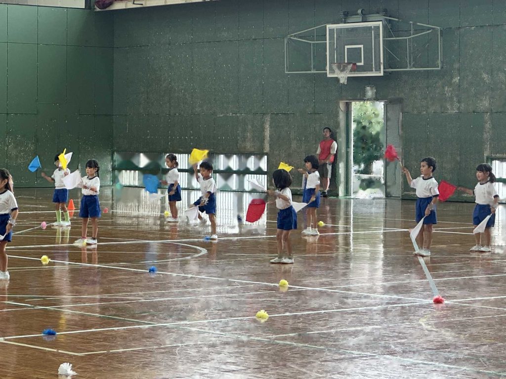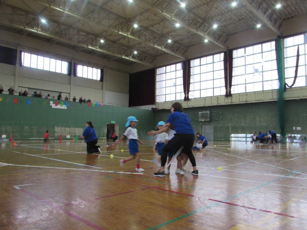 10月4日 今年度は、体育館で秋季大運動会を開催しました。どの競技・演技でも、子ども達が力を出し切って楽しみながら取り組むことができました。